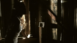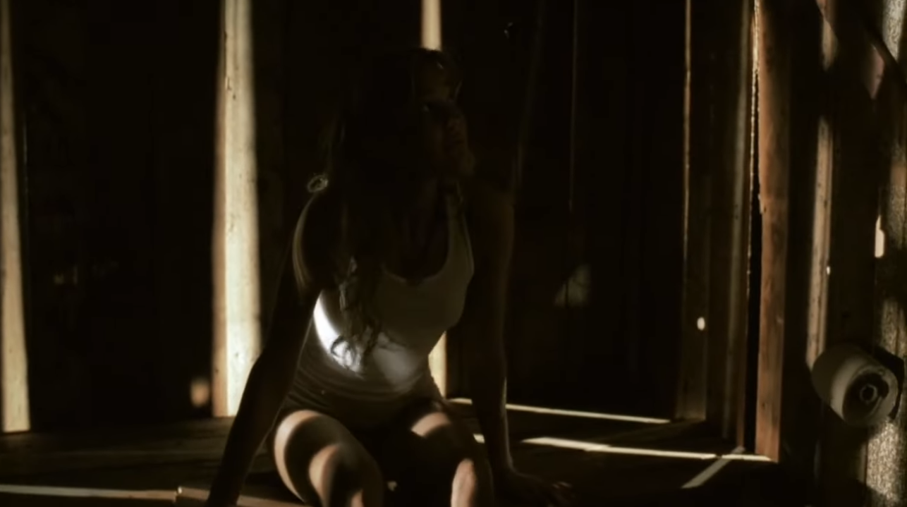 Cookie (Arielle Kebbel) pees in an outhouse, then is partially pulled into it by the creature. Brief peeing sounds are audible, but mostly drowned out by the loud soundtrack. (50:50)