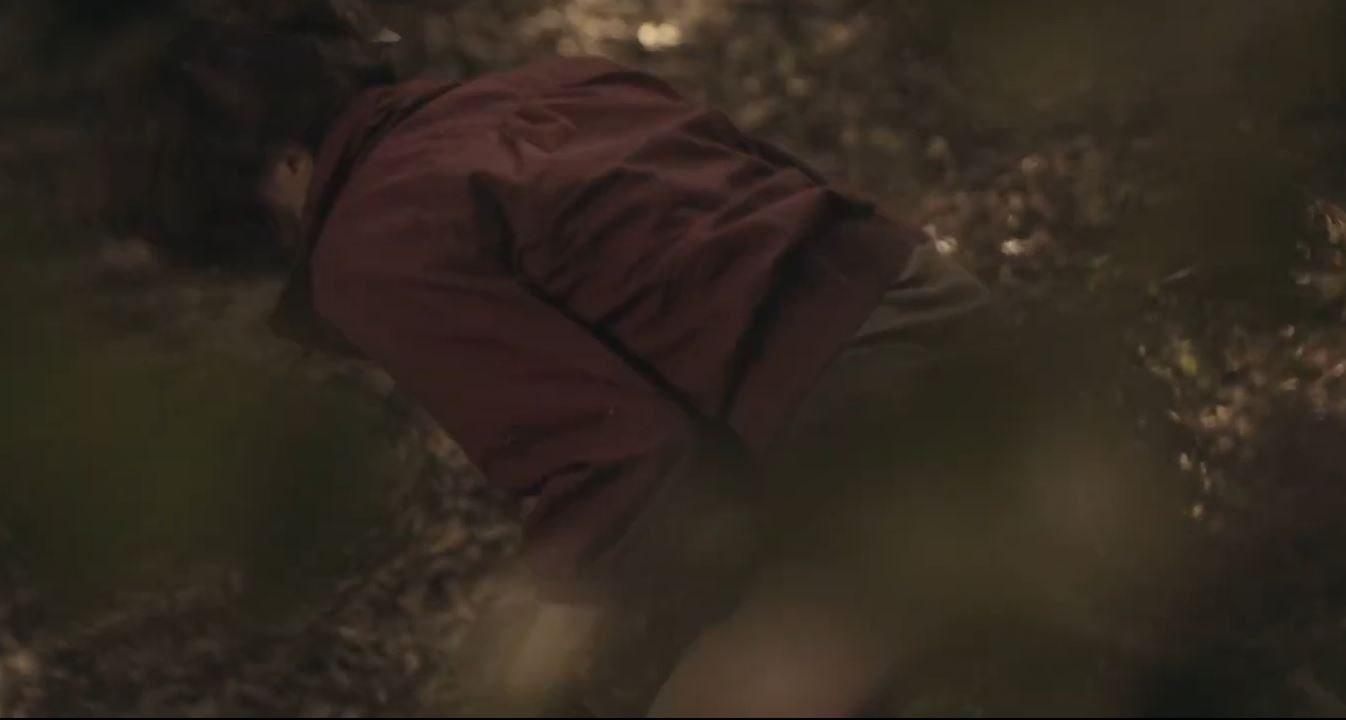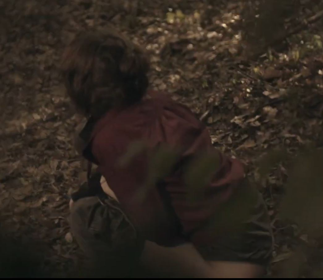 During a game of paintball, Monica (Valene Kane) says "I gotta pee." She squats a few feet away from where an enemy is hiding in the bushes, and we see her from his point of view for a few seconds as she squats. The side of her thigh and butt are visible, but there is no stream or pee audio. The bad guy then jumps out of the bushes and attacks her.