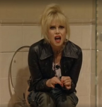 Patsy and Eddy manage to lock themselves in the new "panic room" in Eddy's house. Patsy mentions needing a toilet, but Eddy tells her it's not plumbed in yet. Much later, as the door opens, Patsy is shown sitting on the loo. She says, "I can't stop peeing." There is some very quiet, brief pee audio.