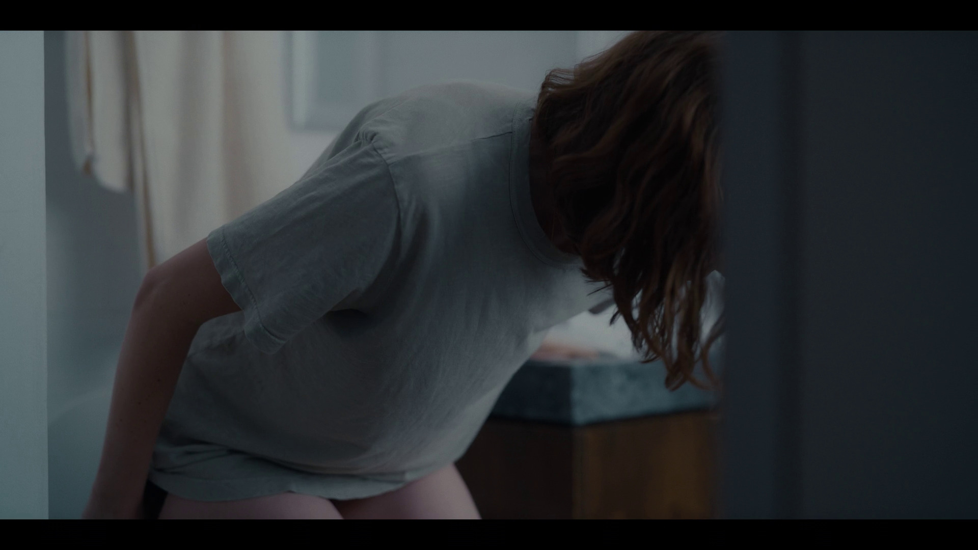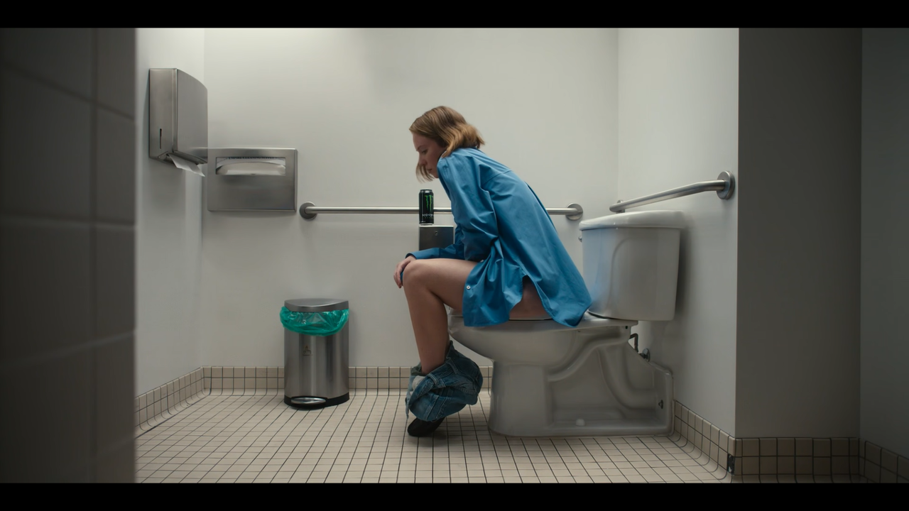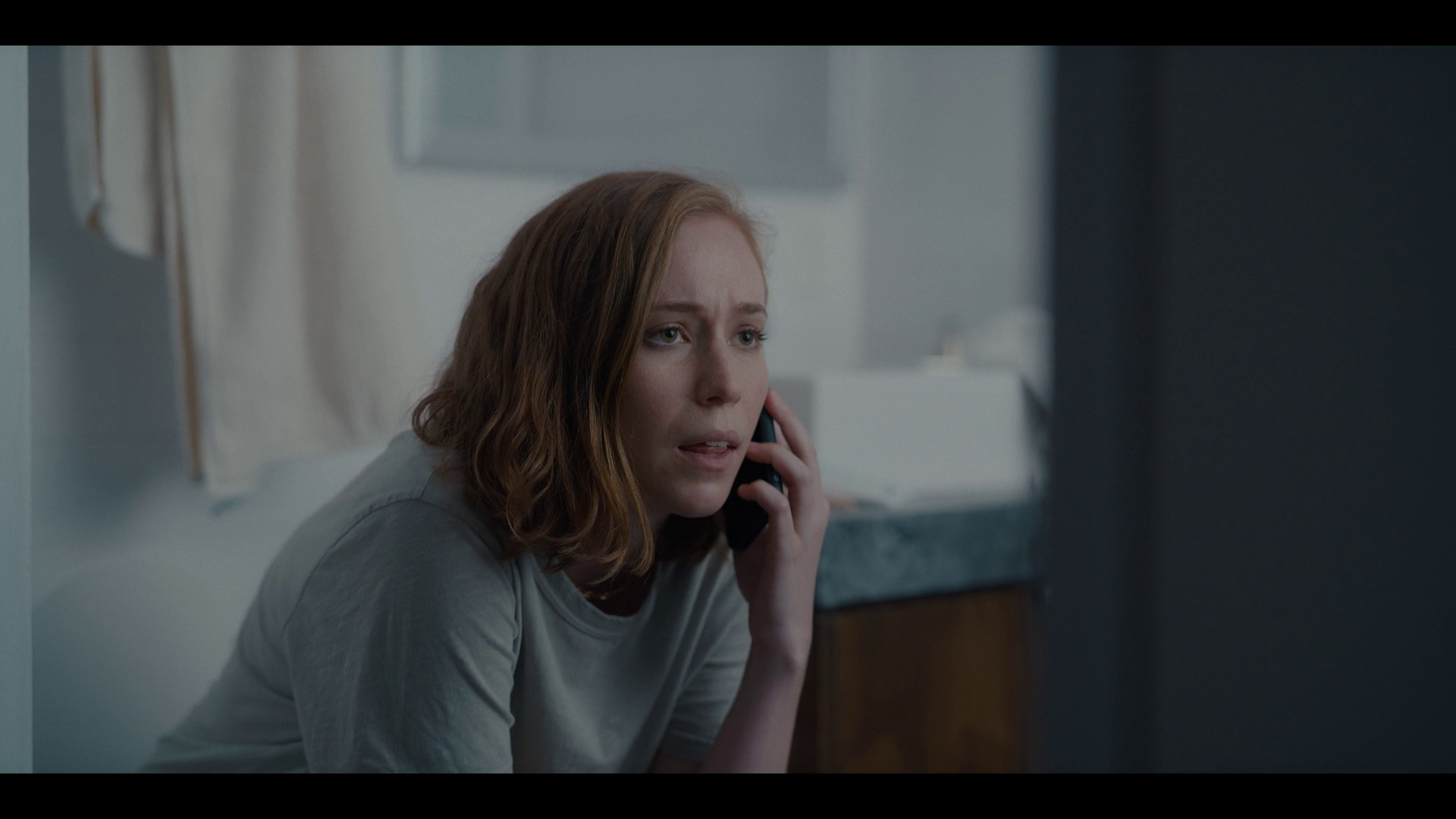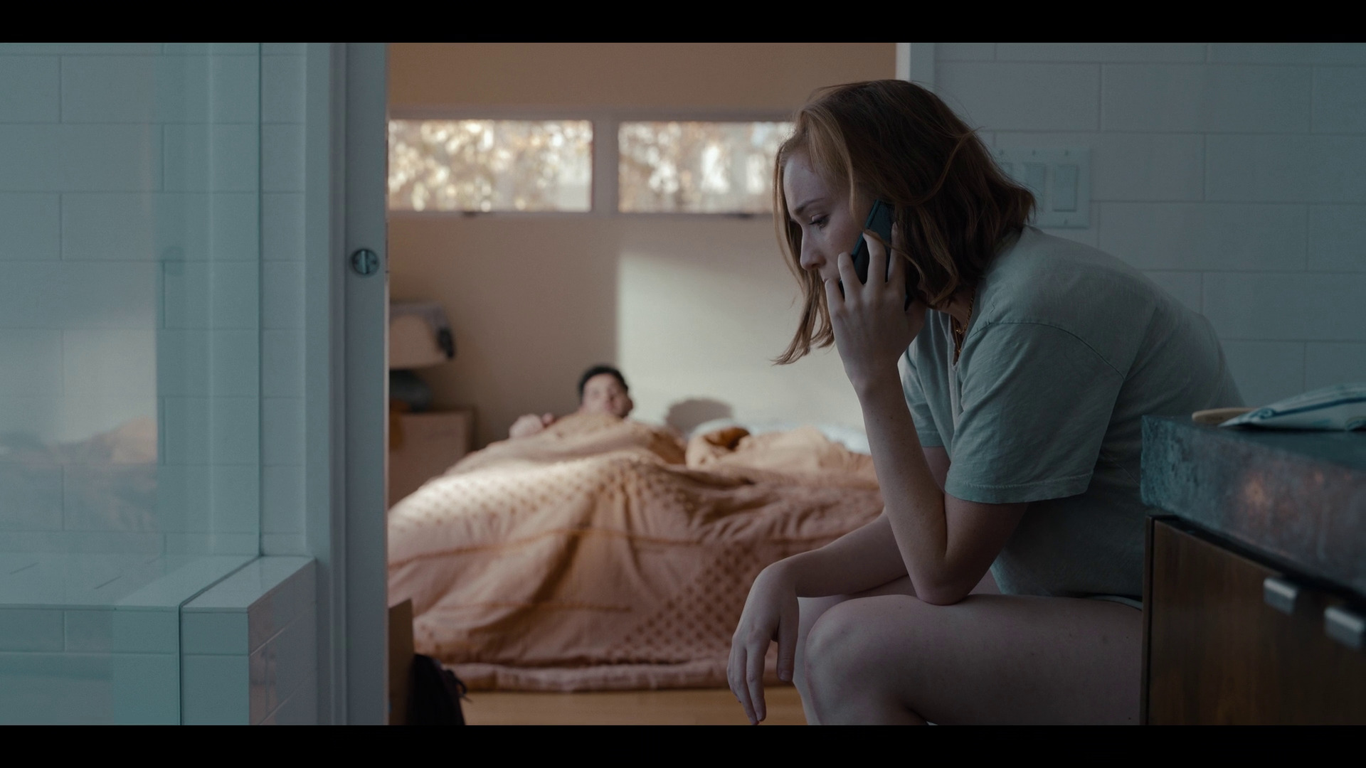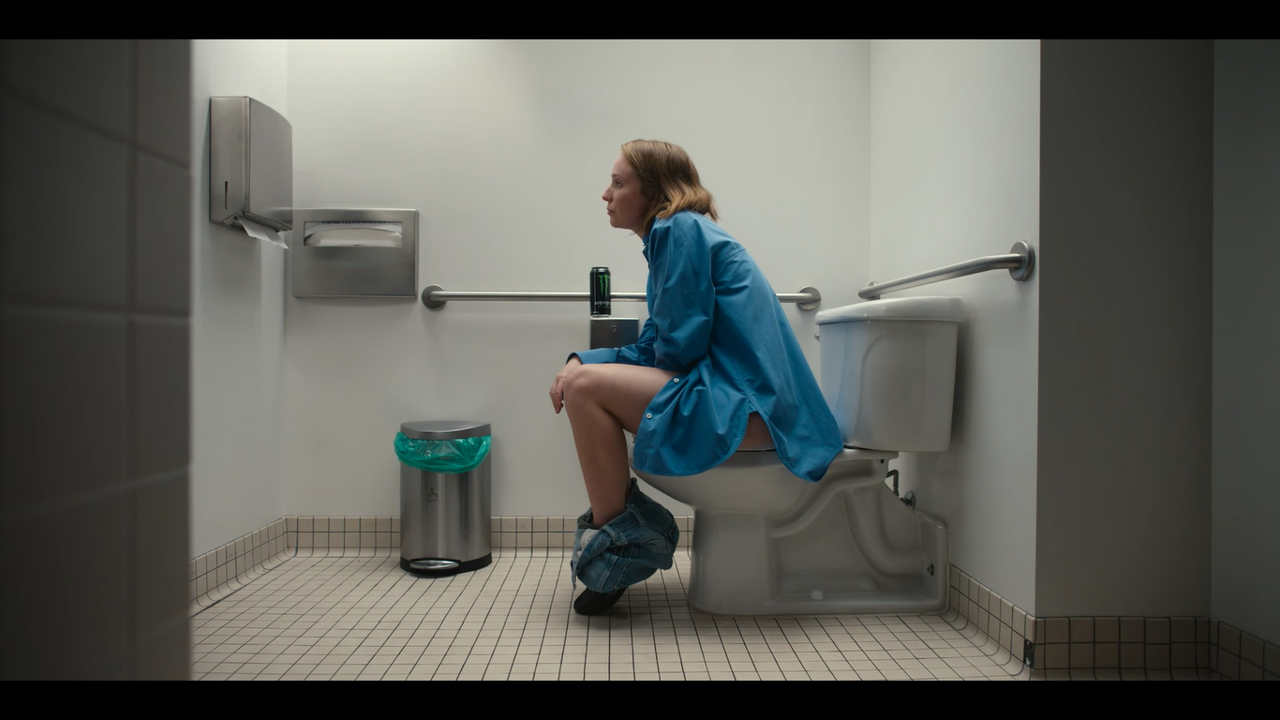 Ava (Hannah Einbinder) wakes up in the morning and goes into the bathroom and sits down to pee while taking a phone call. She then shuts the door which was open once her one night stand wakes up.