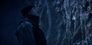 A soldier pees against an organic wall in the Upside Down (11:19).