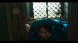Antonina (Isabelle Connolly) goes into her room and hikes up her dress and pees in the chamber pot in her room.