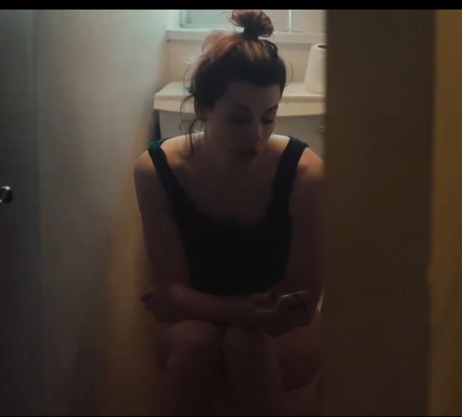 Brian arrives home to see Maggie (Kelly Wenham), sitting on the toilet with some bare leg shown.