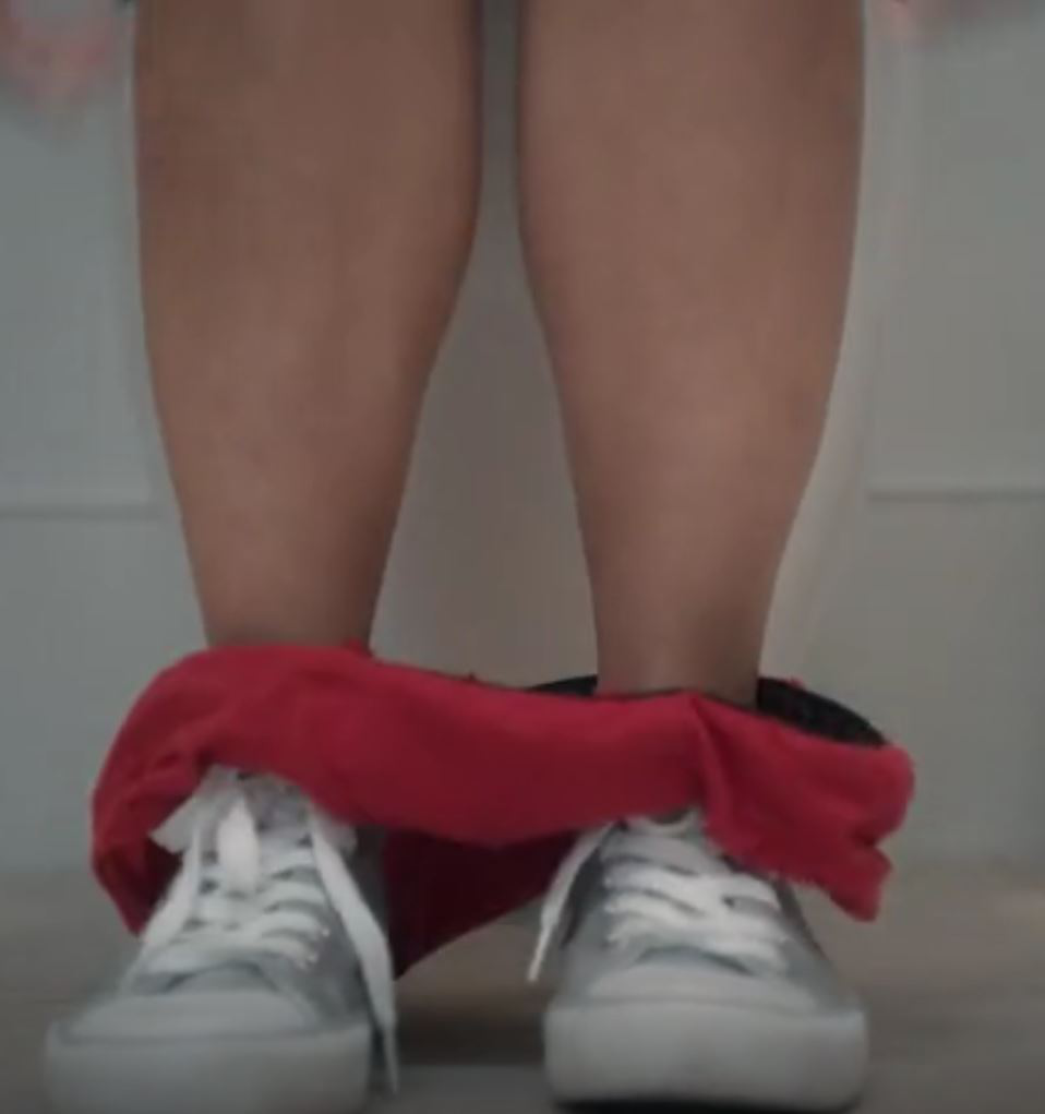 Tanie (Anya Singh), is seen pulling her underwear to her ankles on the toilet. There she encounters a man masturbating in the bathtub, causing her to pull up her pants and leave.