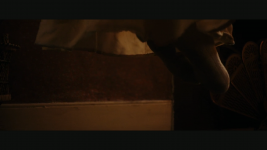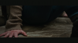 Peig (Bríd Ní Neachtain) urinates on herself when Shoo arrives at her house. A puddle of urine forms under the door;