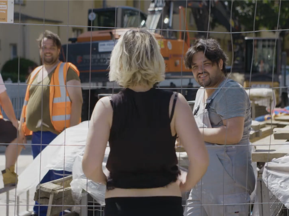 Kim (Martina Schöne-Radunski) gets an operation giving her a penis. Later, when she is harassed by cat-callers while jogging she takes out her penis and urinates in front of them. (30:00)