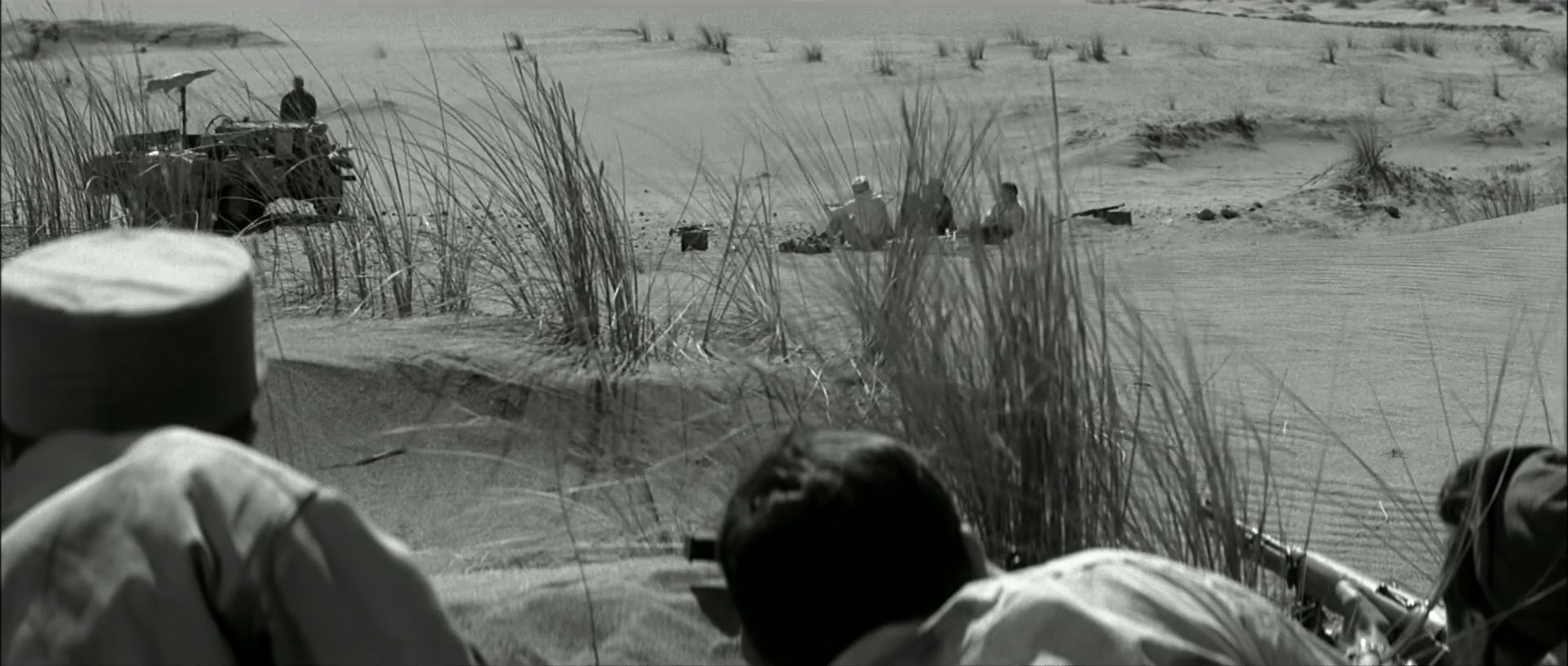 Around 17:00, a German soldier goes behind a vehicle to pee. The protagonists are waiting for him to finish to shoot him and his mates.