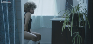 Daphne (Ariana DeBose) is shown sitting on a toilet.