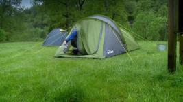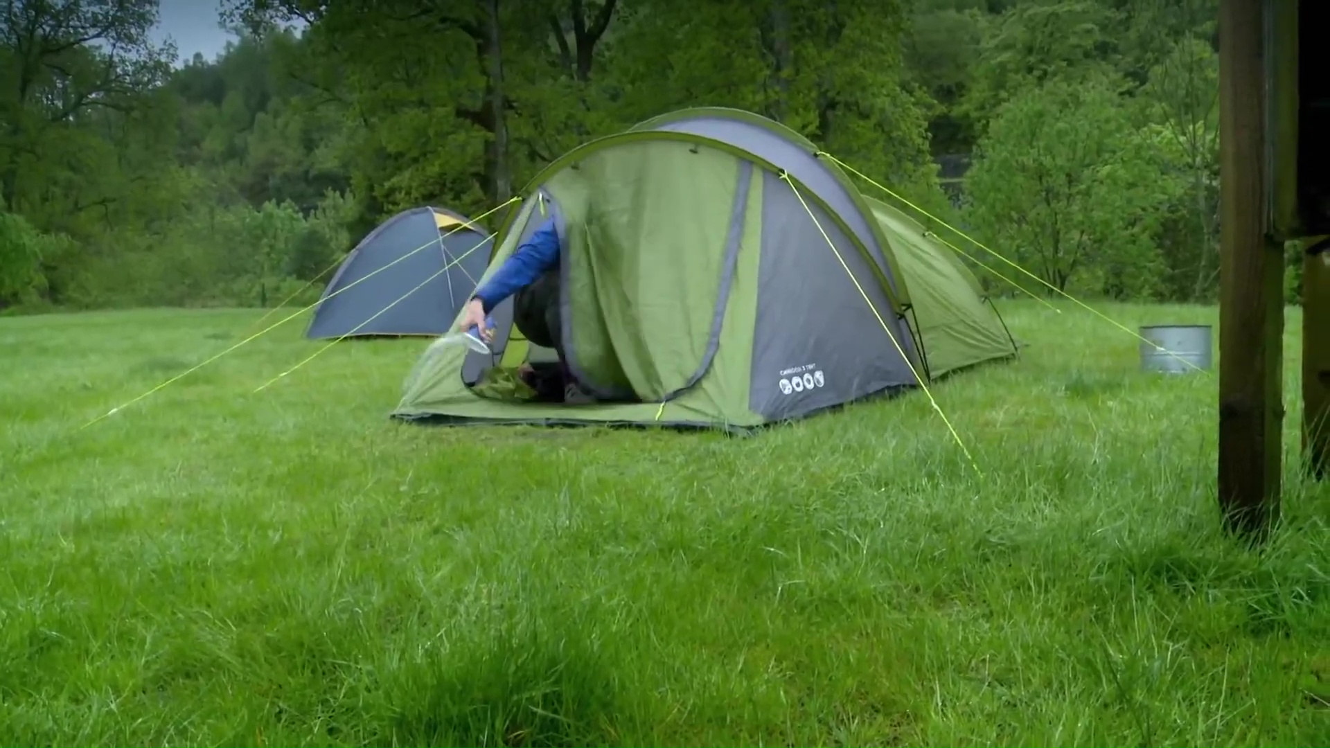 Emma mentions that she had to wee in a cup while in a tent and the contents are shown being emptied out of the tent. Can be found around 10:50.