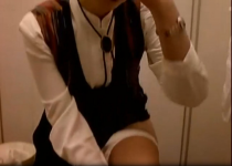 A Japanese girl appears sitting on the toilet reading a book and drinking coffee.