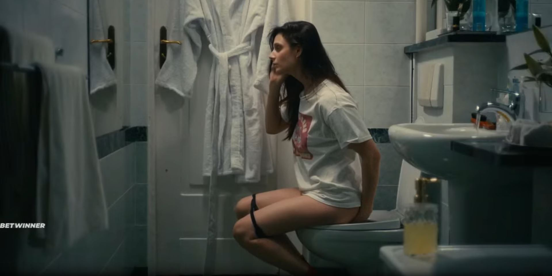 Anna Jakubowitz (Judith Chemla) appears sitting on the toilet wiping herself with toilet paper while talking to someone on the phone.
