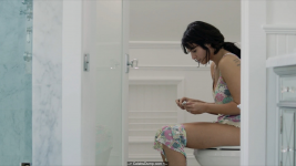 Robin (Scout Taylor-Compton) uses the toilet while talking to her husband.