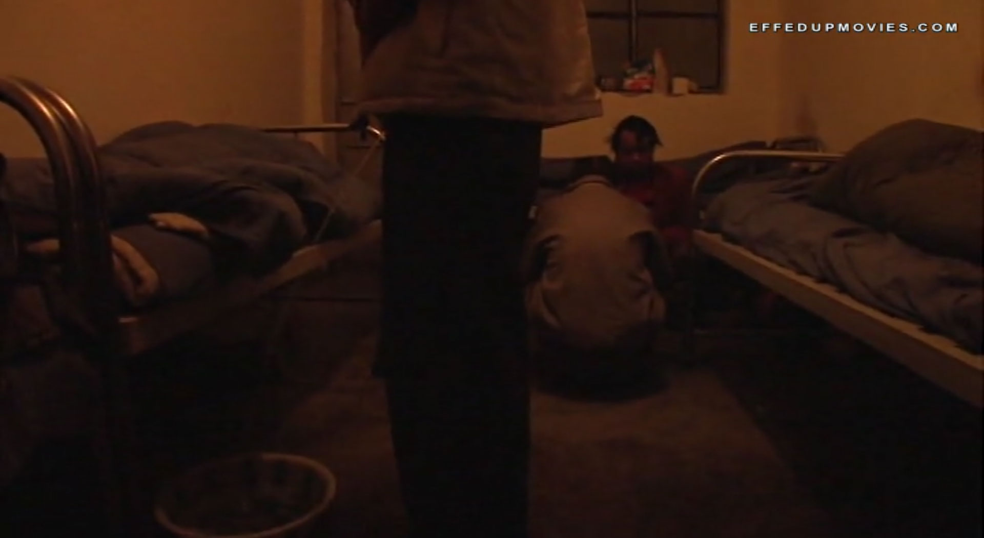 A man pees in a bucket. (11:15)