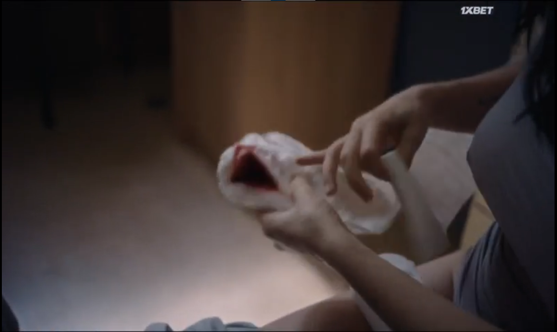 There are two scenes in which Jenny uses the toilet in prison: The first is when she wipes herself with toilet paper and blood comes out, and the other is when she uses wet wipes.