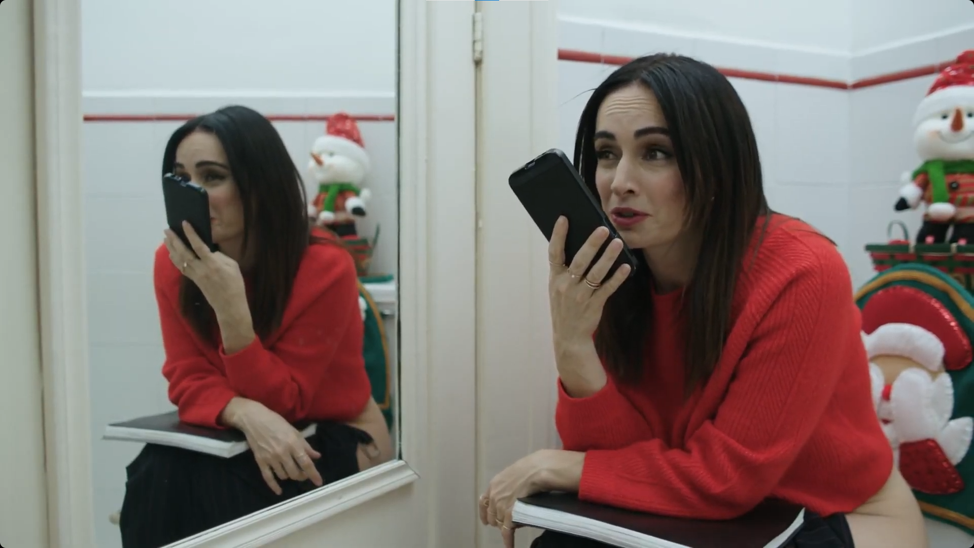 Ana squats and pees on a script in the deserts of Los Angeles.
