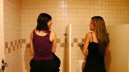 At the end, Veronica and Leilani put their skills to good use and pee in the urinals in the guys bathroom, the audio can clearly be heard for over thirty seconds.