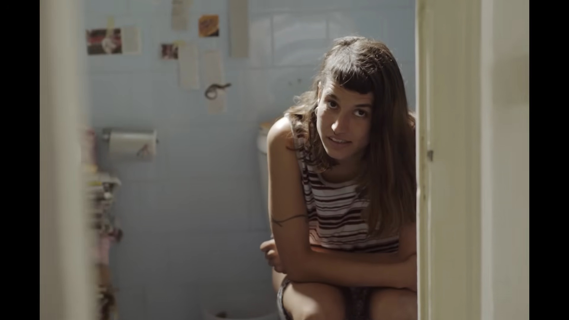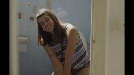 Around 5:00, Emma goes to the bathroom and leaves the door open. Her roomate, Max, watches her pee and audio can be heard.
